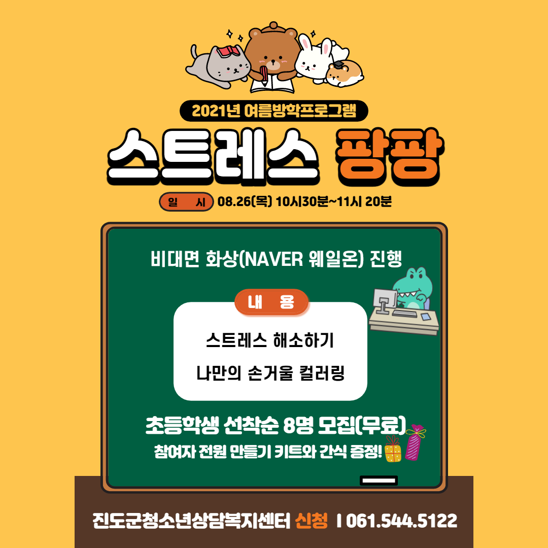 신청 : 유선전화 061-544-5122 진도군청소년상담복지센터