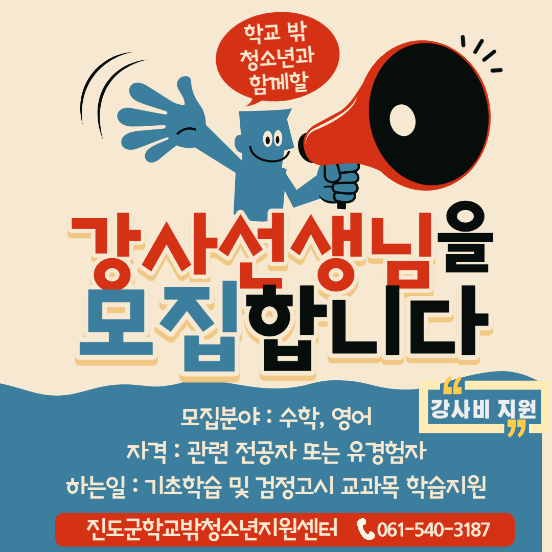 지도해 주실 선생님을 모집합니다.
