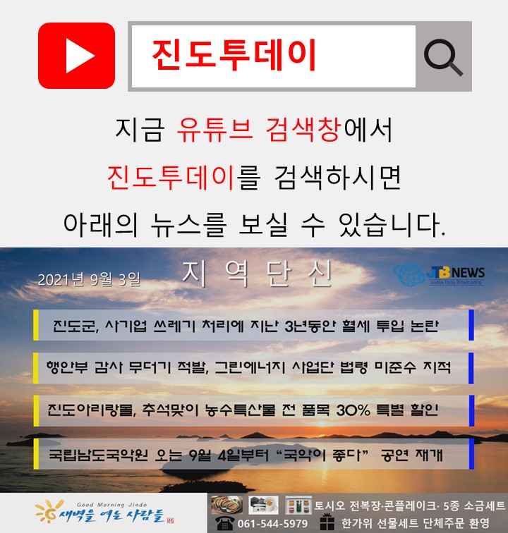 ☞뉴스 영상은 JTB NEWS 홈페이지(www.jindotoday.com) 유튜브를 통해서 확인가능합니다.