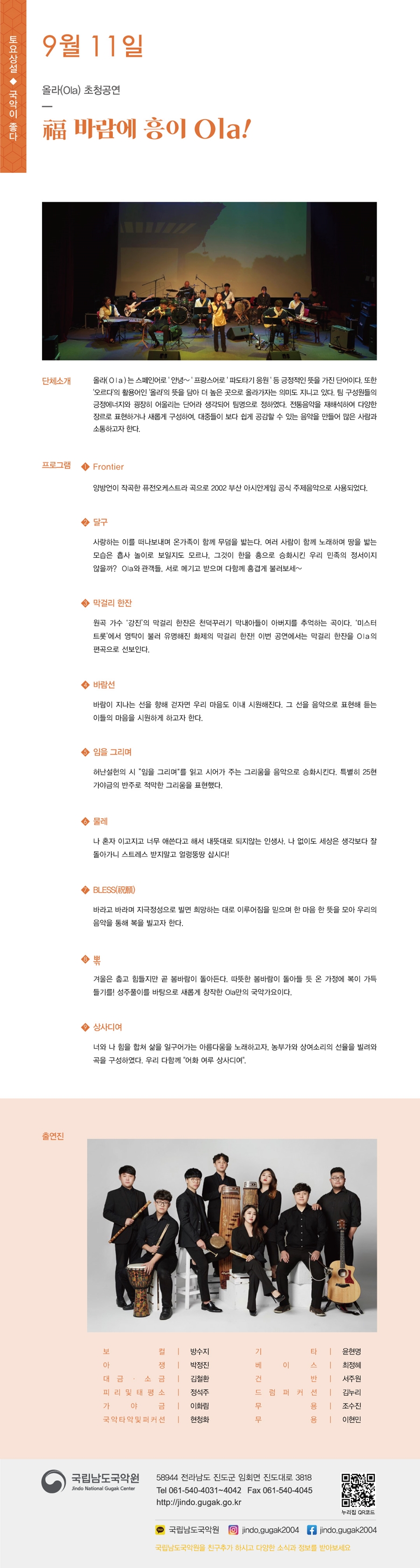 이번 주 토요상설 ‘국악이 좋다!’ 공연은 올라(Ola) 초청공연 “福 바람에 흥이 Ola!”!!
