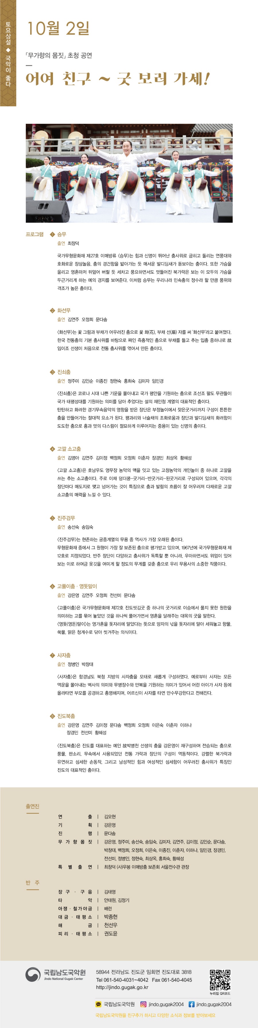 제목 [국립남도국악원] 토요상설 ‘국악이 좋다!’ 『무가향의 몸짓 초청공연 “어여 친구~ 굿 보러 가세!”』