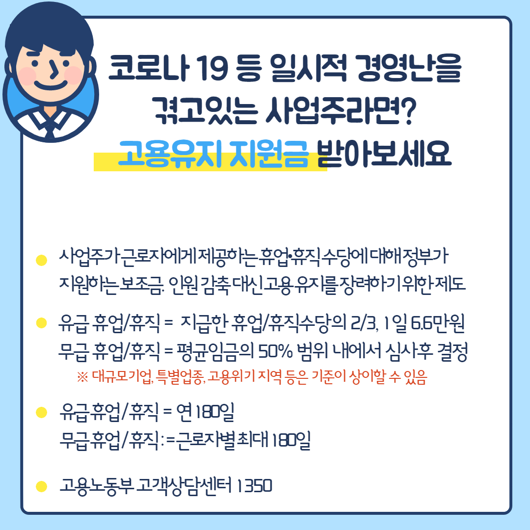 (고용노동부) 사장님. 고용지원사업 알려드릴게요!