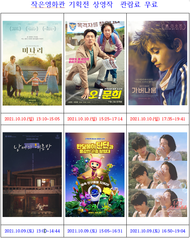 2021년 작은영화관 기획전_진도 <2021.10.09(토)~10.10(일) 상영작>