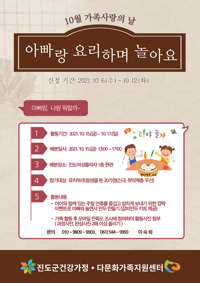 ♣가족센터♣ 10월 가족사랑의 날 프로그램(아빠랑 요리하며 놀아요!!) *접수 마감*