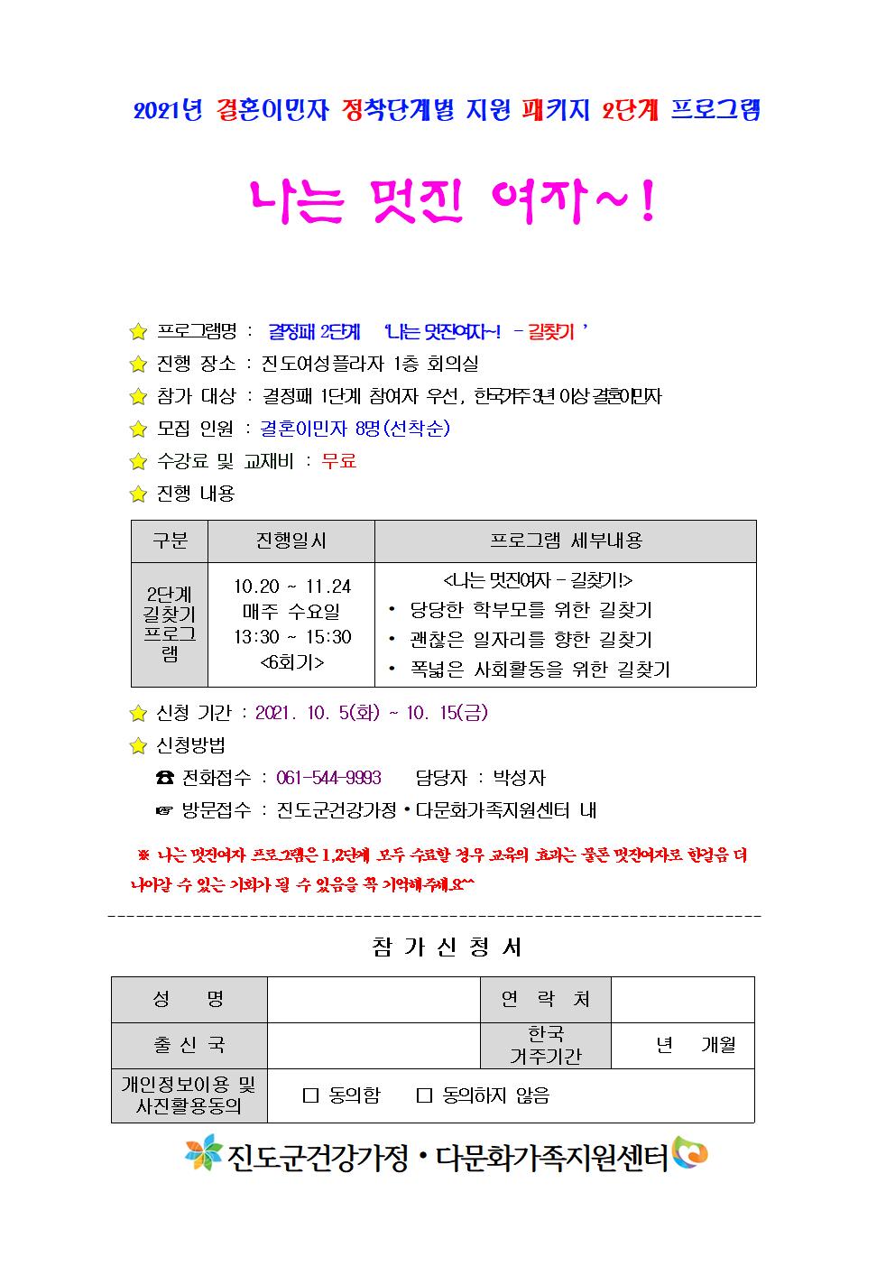 2021 결혼이민자 정착단계별 지원패키지 2단계 '나는 멋진 여자~!'- 길찾기 프로그램 신청 안내