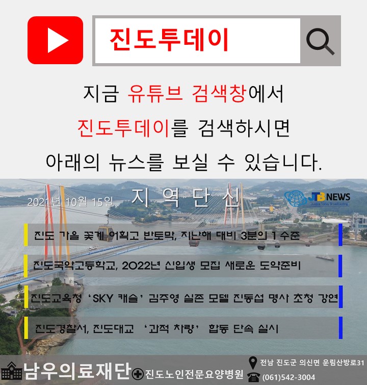 ☞뉴스 영상은 JTB NEWS 홈페이지(www.jindotoday.com) 유튜브를 통해서 확인가능합니다.