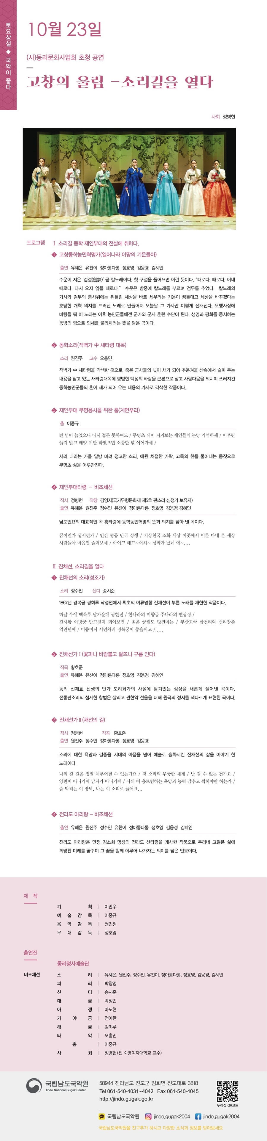 제목 [국립남도국악원] 토요상설 ‘국악이 좋다!’ 『(사)동리문화사업회 초청공연 “고창의 울림-소리길을 열다”』