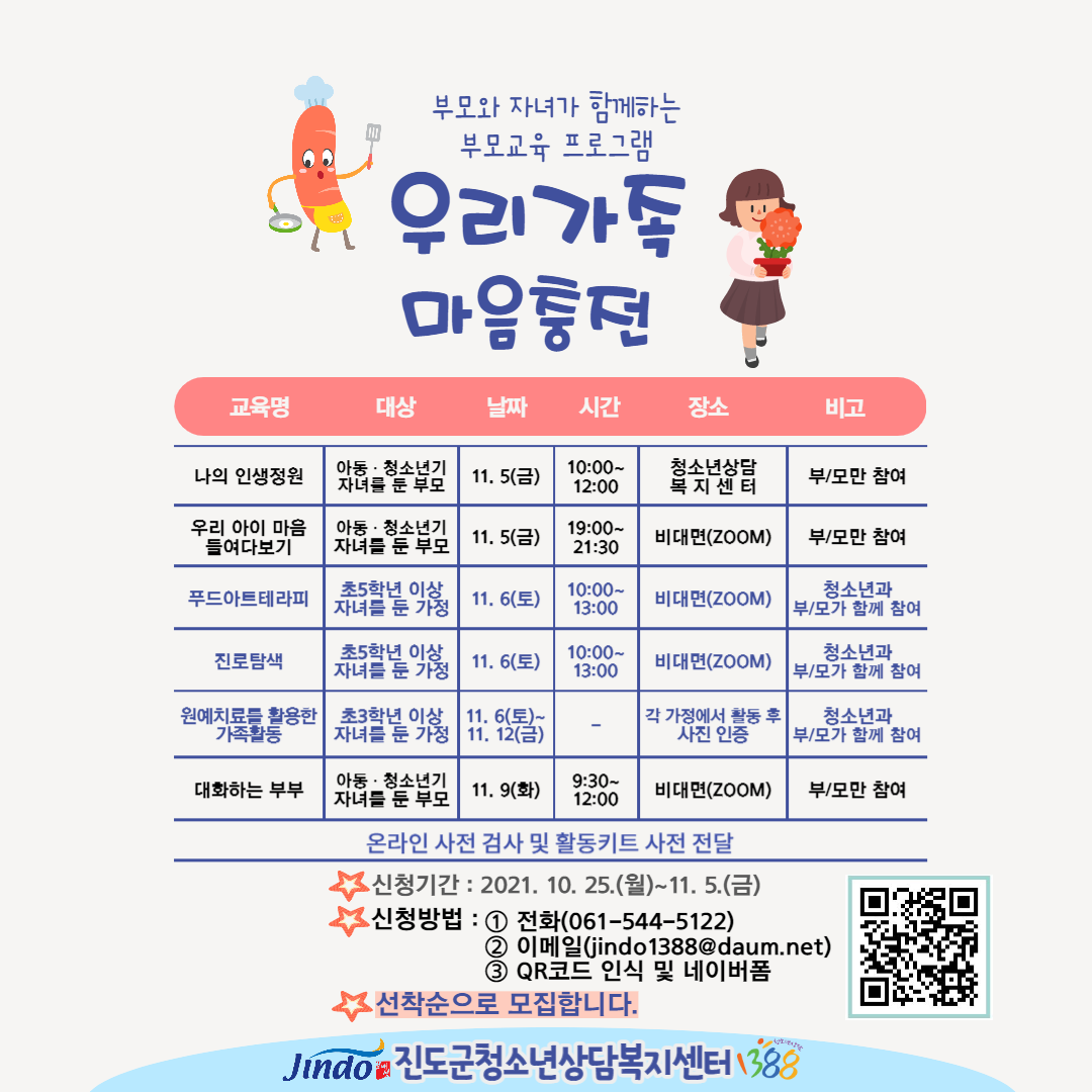 청소년상담복지센터에서 『우리 가족 마음 충전』
