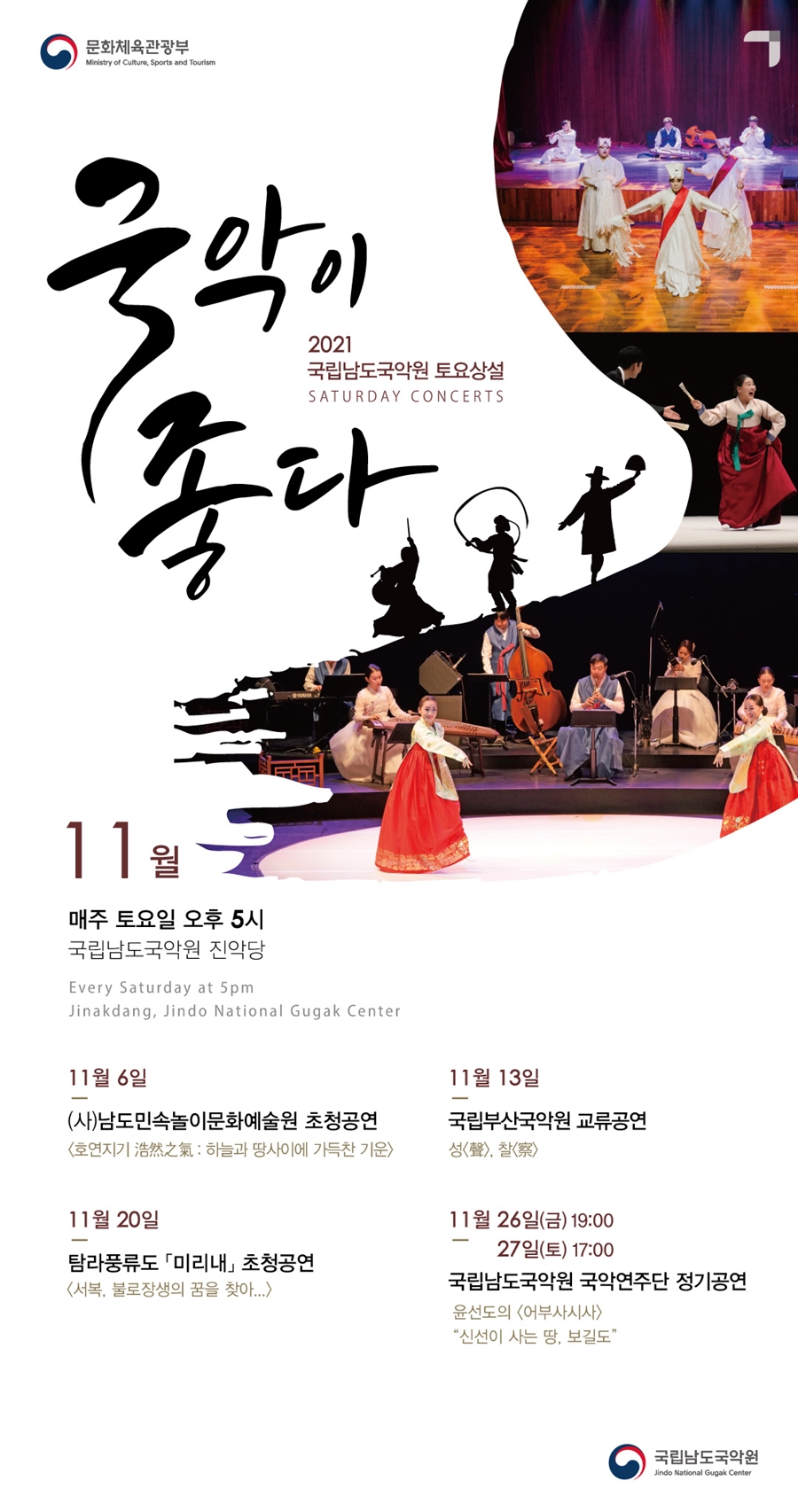 < 11월 토요상설 ‘국악이 좋다!’ 및 교류공연, 국악연주단 정기연주회 안내 >