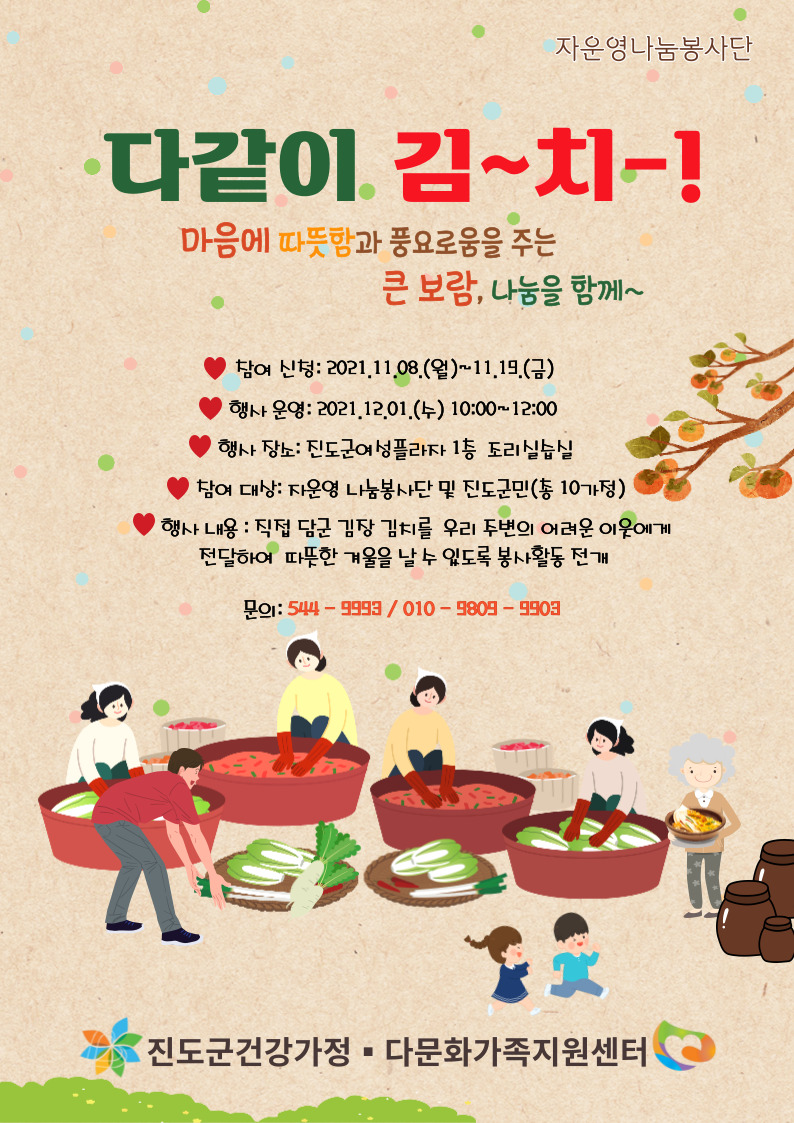 ♣가족센터♣ 자운영 나눔 봉사단 프로그램 - 다같이 김~치-! 참여자 모집