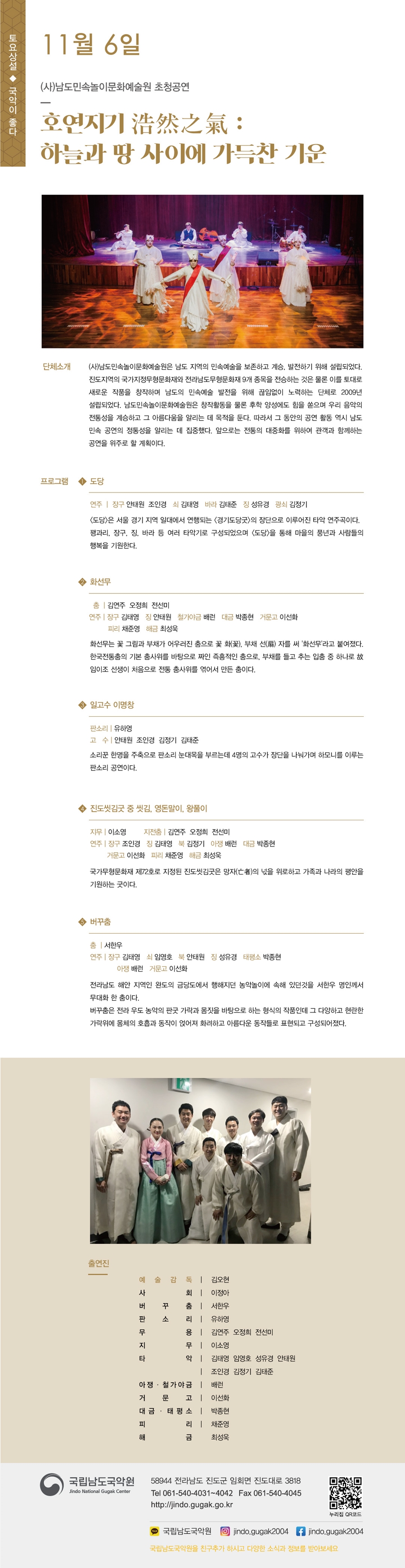 (사)남도민속놀이문화예술원 초청공연 “호연지기 浩然之氣: 하늘과 땅 사이에 가득찬 기운”