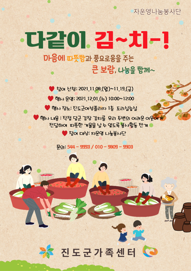 ♣가족센터♣ 자운영나눔봉사단 프로그램 - 다같이 김~치-! 참여자 모집