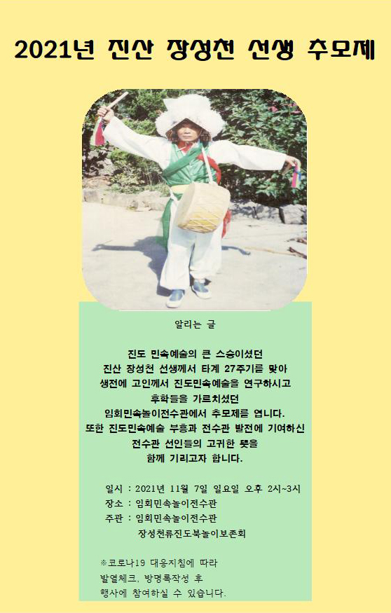 2021 진산 장성천 선생 추모제 알립니다