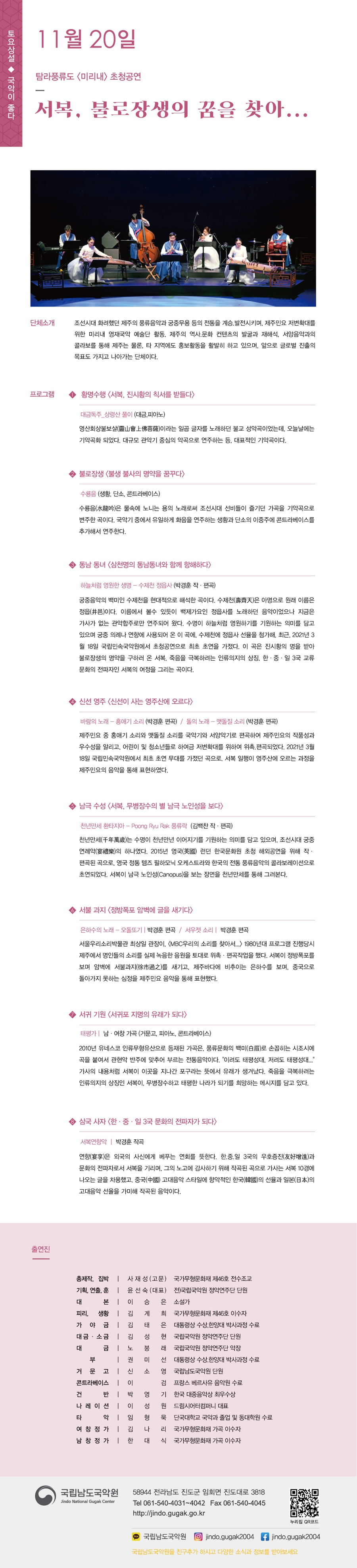토요상설 ‘국악이 좋다!’ 『탐라풍류도 미리내 초청공연 “서복, 불로장생의 꿈을 찾아…”』