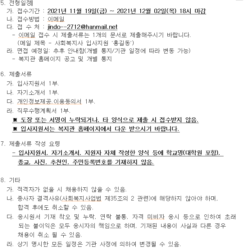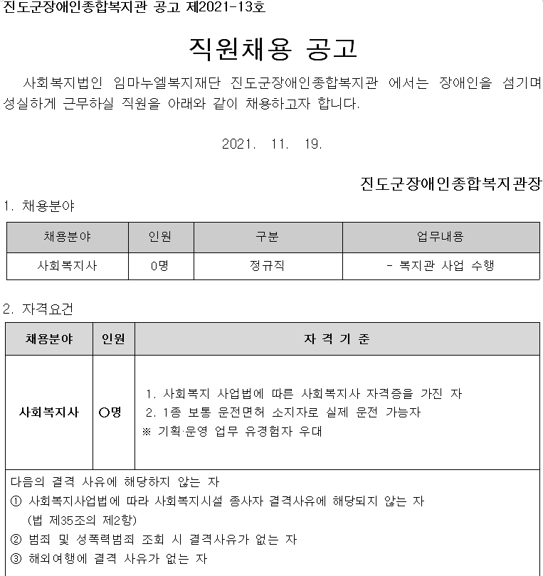 진도군장애인종합복지관 채용 재공고