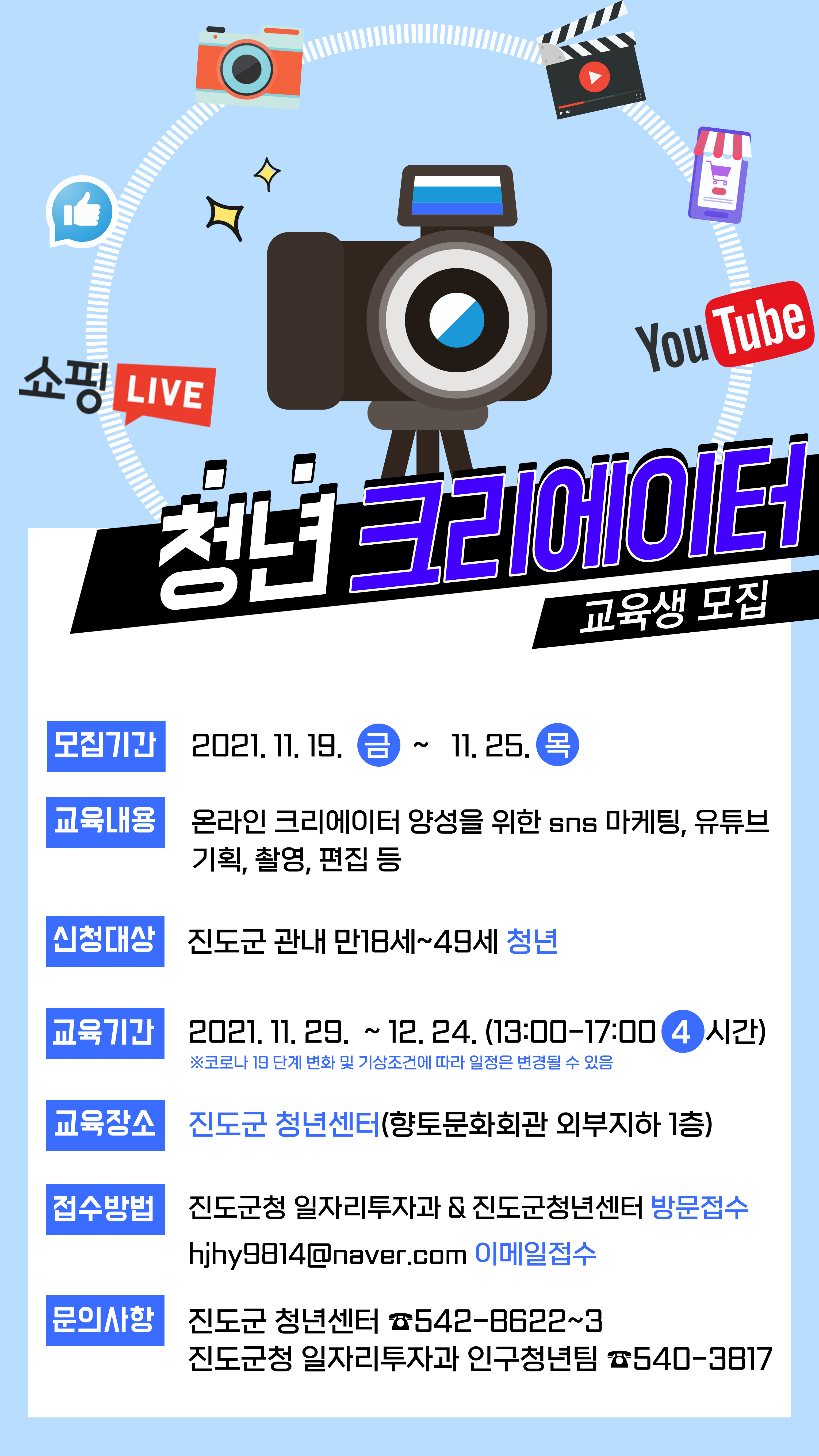 2021년 진도군 청년 크리에이터 교육 프로그램 수강생 모집 공고