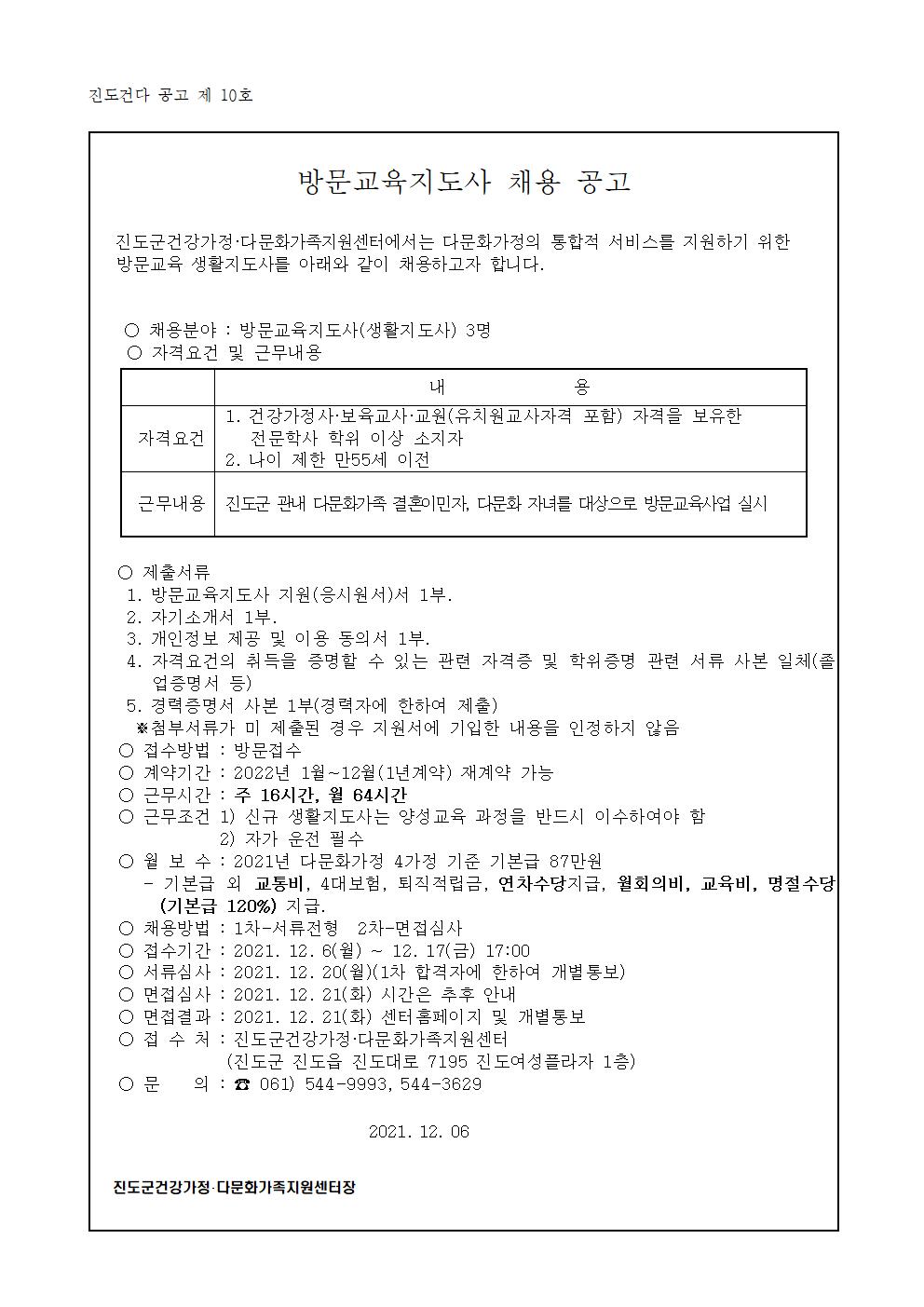 2021년 진도군건강가정다문화가족지원센터 직원 모집 공고