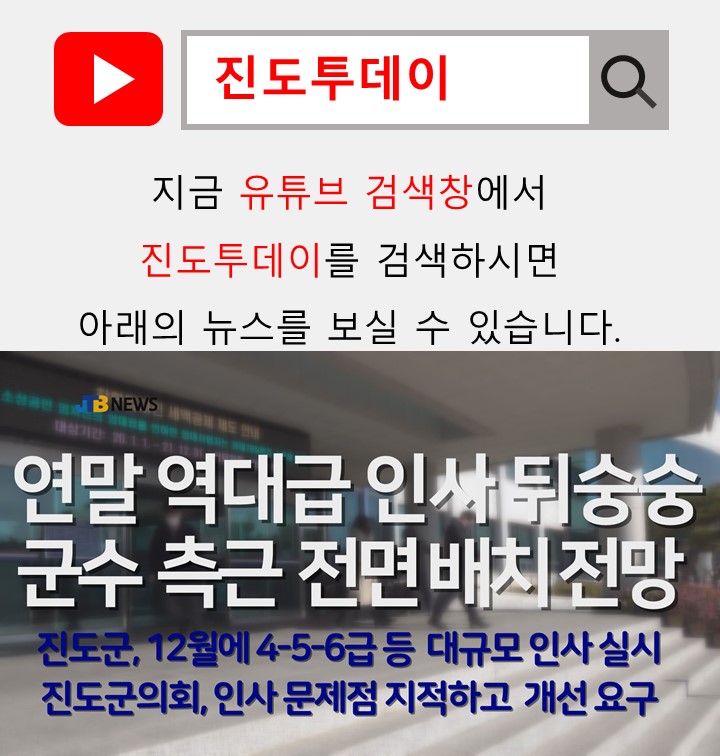 ☞뉴스 영상은 JTB NEWS 홈페이지(www.jindotoday.com) 유튜브를 통해서 확인가능합니다.