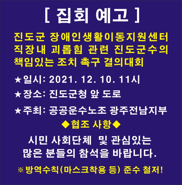 집회 예고 - 직장내 괴롭힘 관련 진도군수의 책임있는 조치 촉구 결의대회