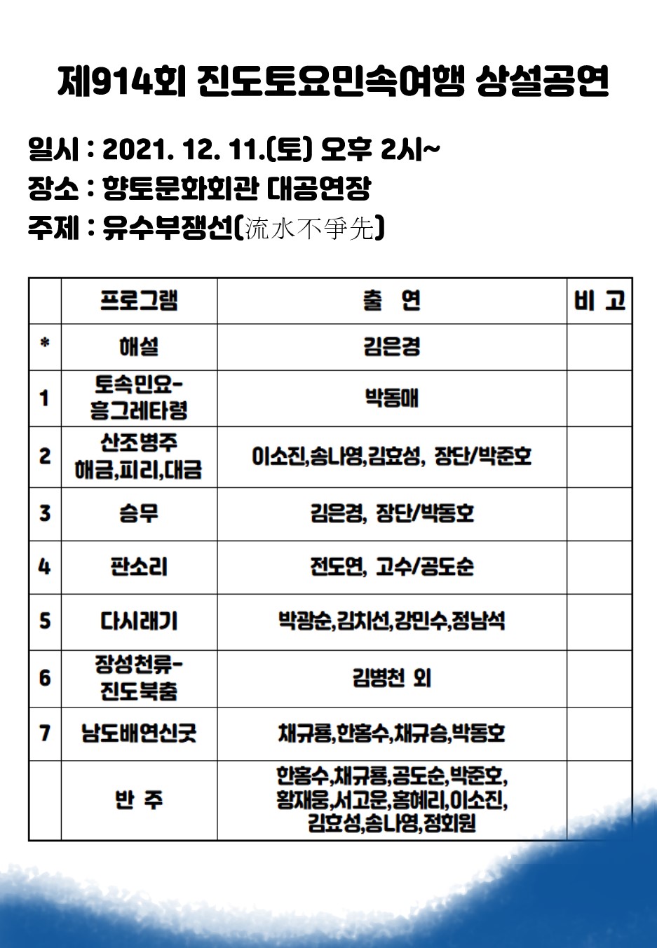 제목 제914회 진도토요민속여행 상설공연에 여러분을 초대합니다.