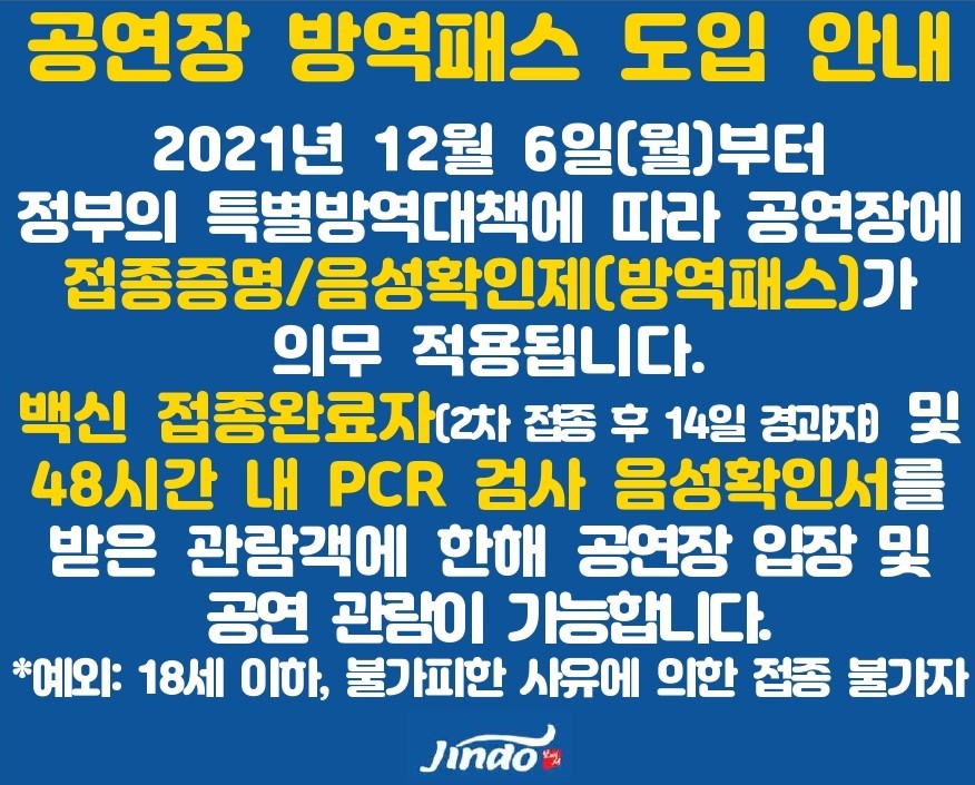 공연장에 접종증명/음성확인제(방역패스)가 의무 적용됨에 따라