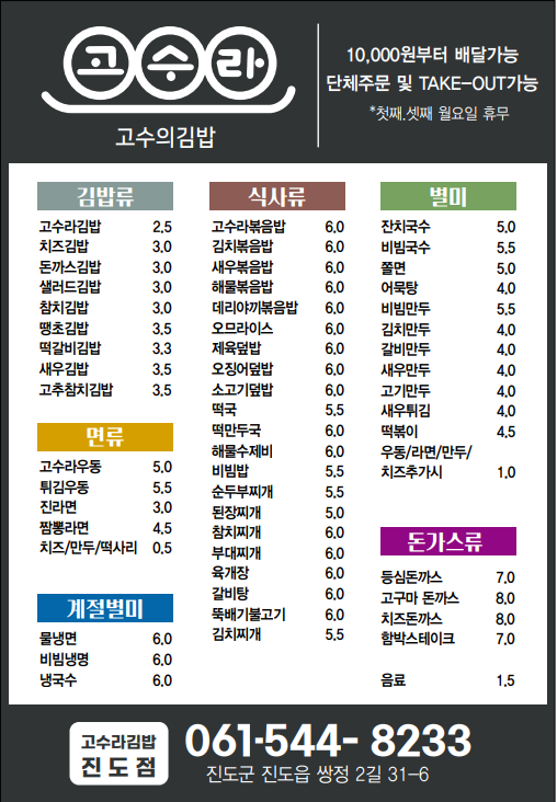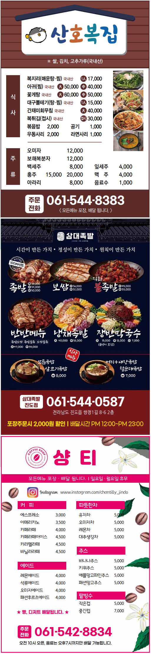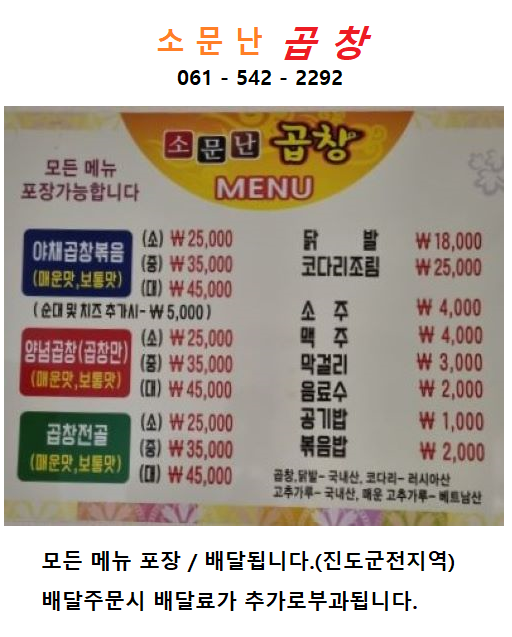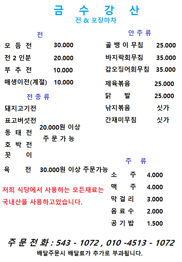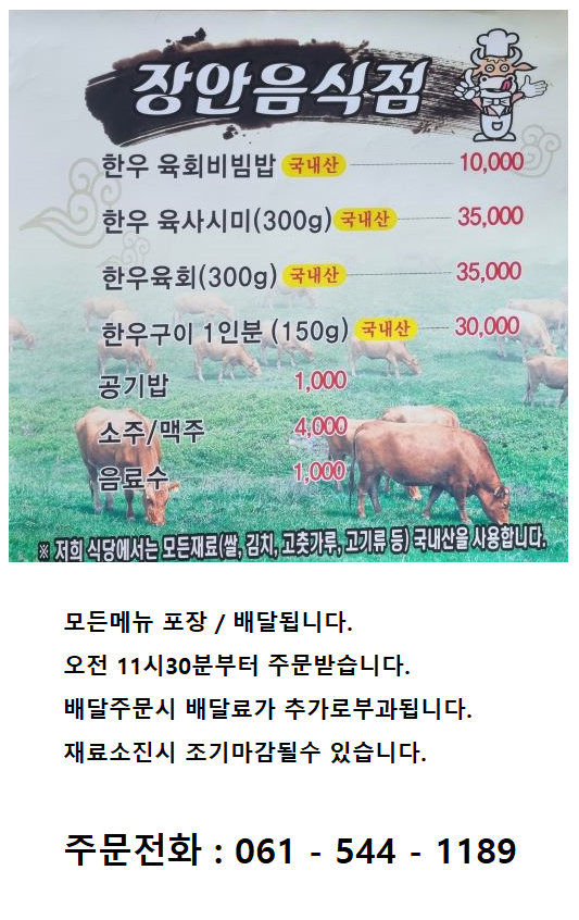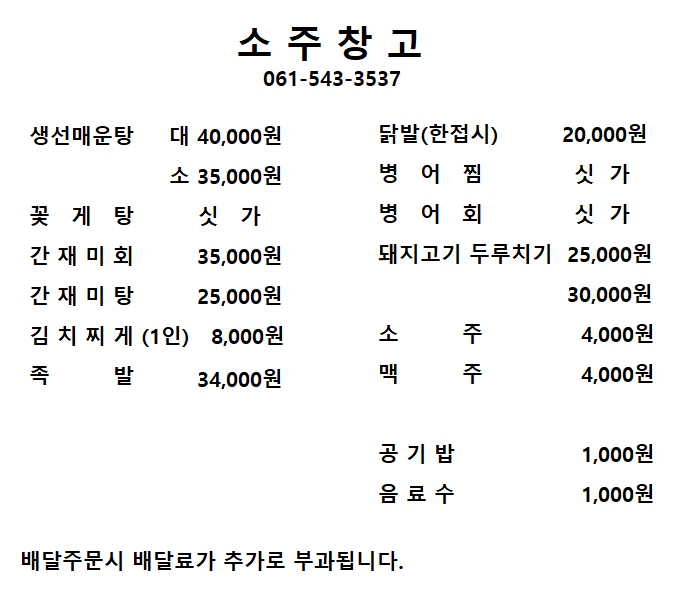 <<<<<배 달 대 행 칸>>>>>과 함께하시는 매장메뉴입니다.