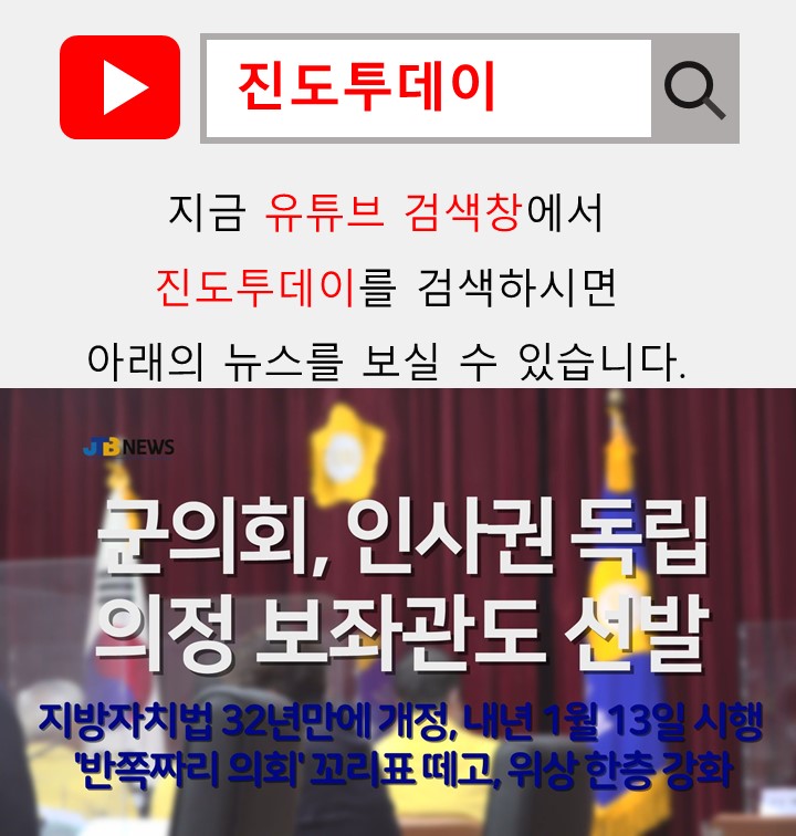 ☞뉴스 영상은 JTB NEWS 홈페이지(www.jindotoday.com) 유튜브를 통해서 확인가능합니다.