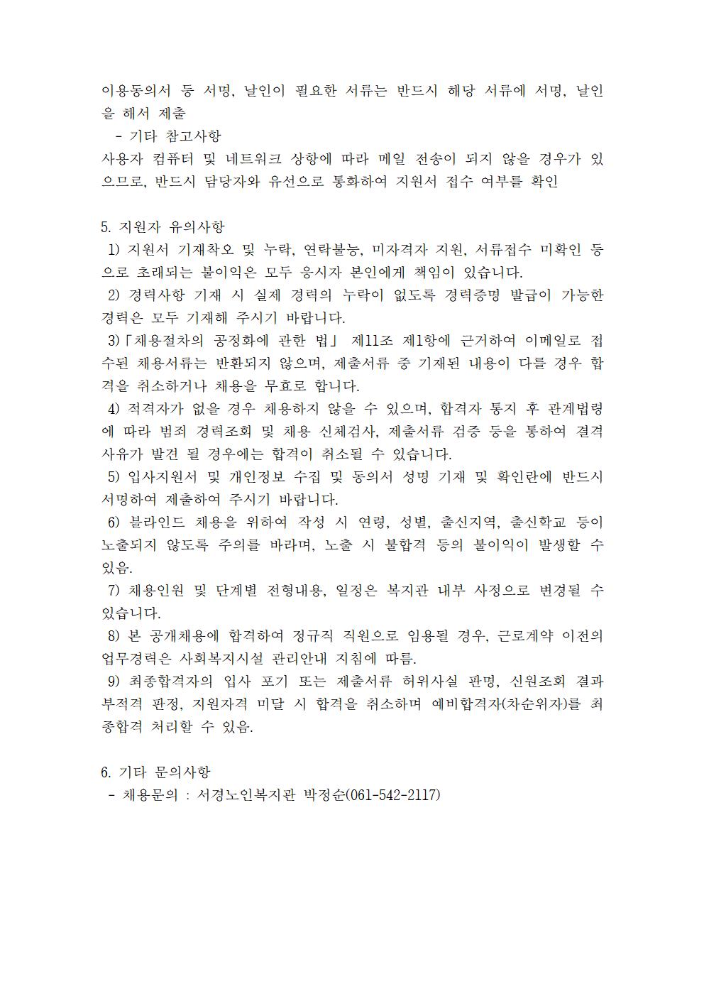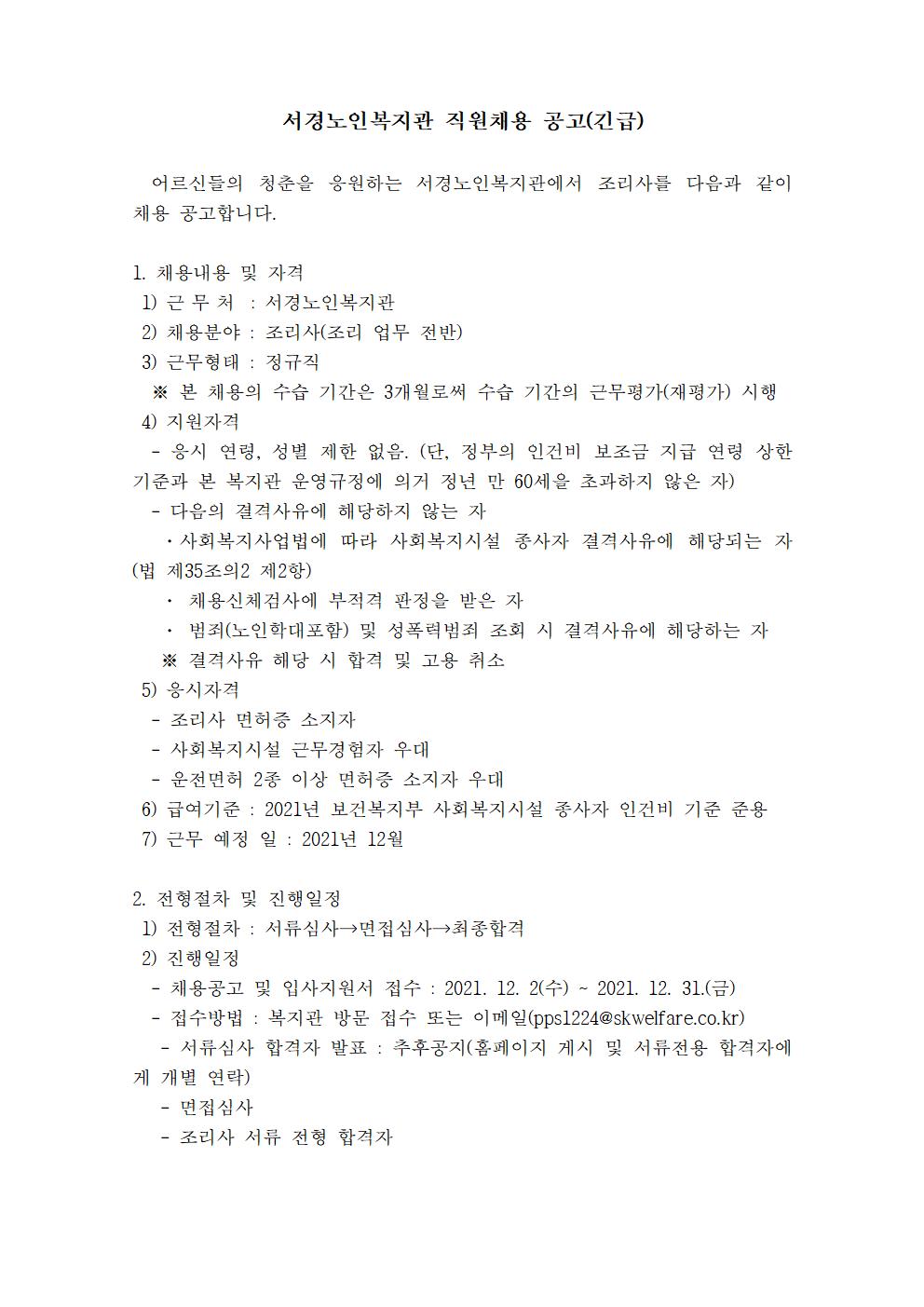 서경노인복지관 조리원 채용공고(긴급)