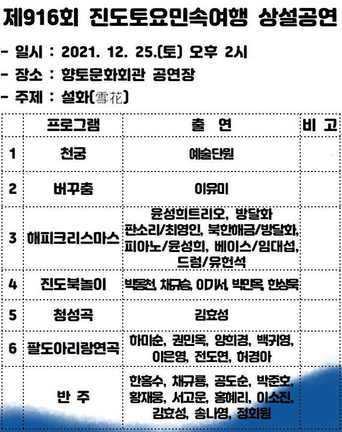 이번주 토요일(2021. 12. 25.) 오후 2시, 진도향토문화회관 대공연장에서