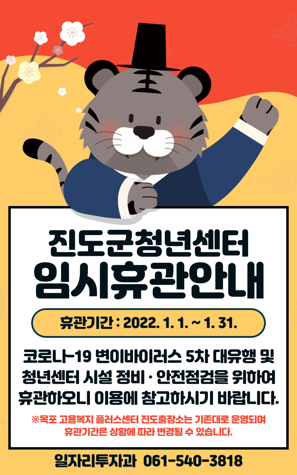 *진도군 청년센터 임시휴관 안내*