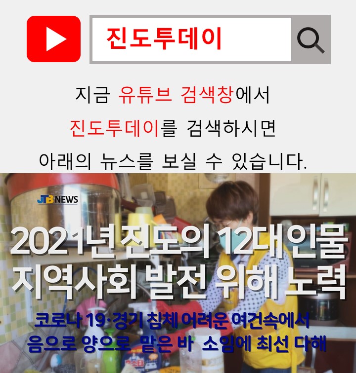 ☞뉴스 영상은 JTB NEWS 홈페이지(www.jindotoday.com) 유튜브를 통해서 확인가능합니다.