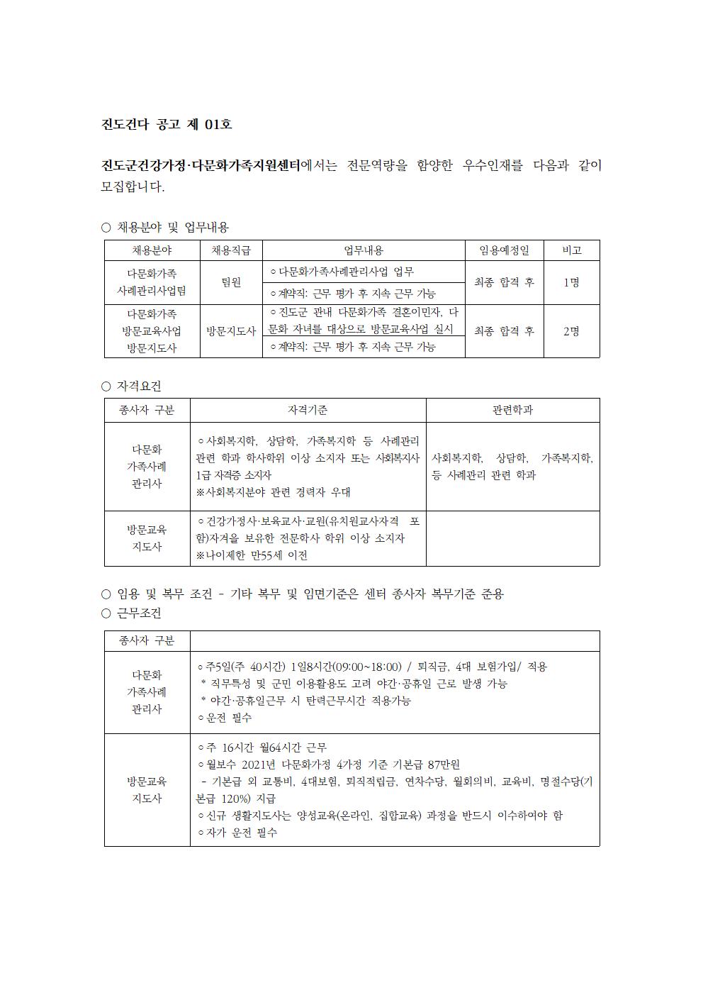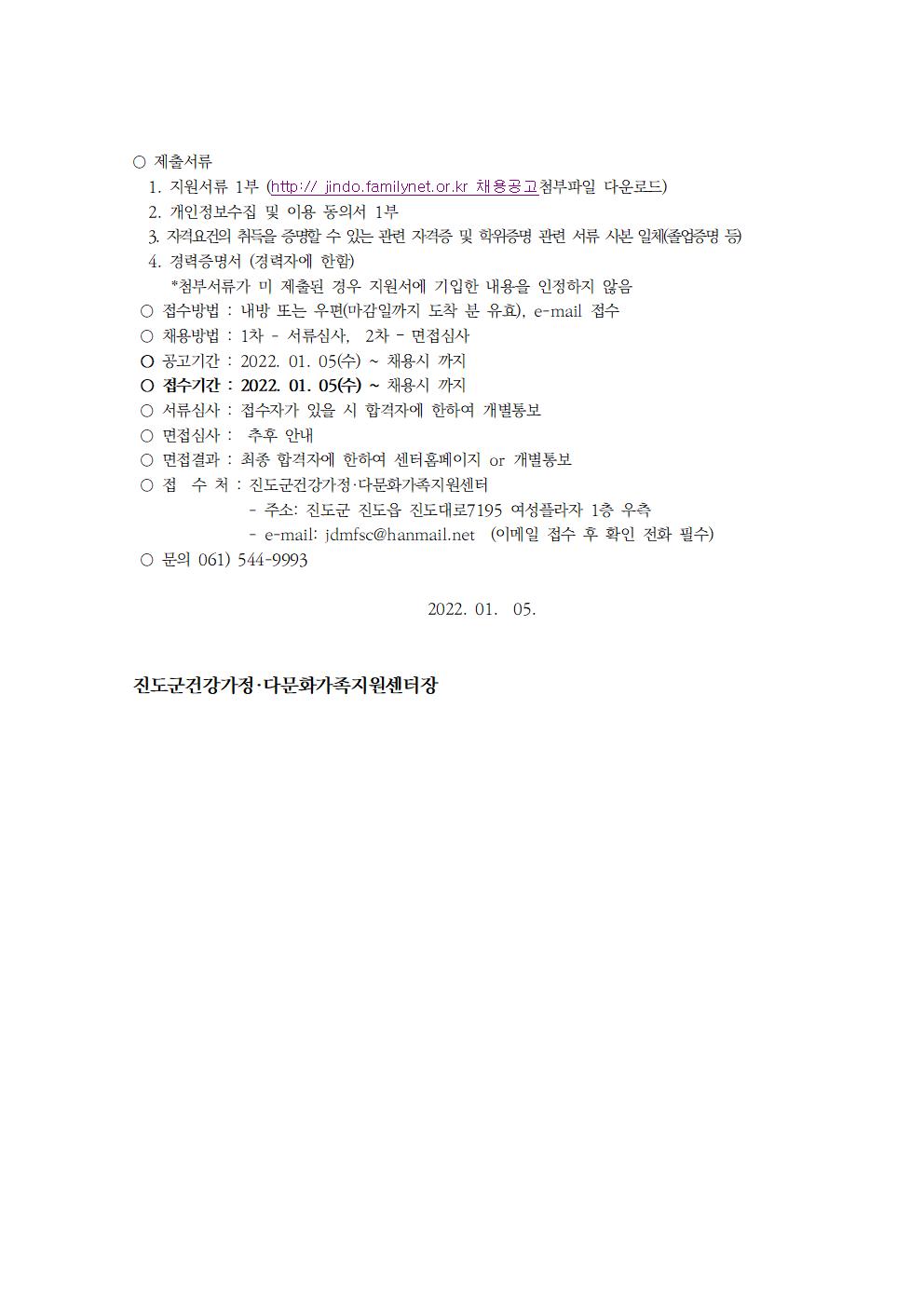 2022년 진도군건강가정다문화가족지원센터 직원 채용 공고