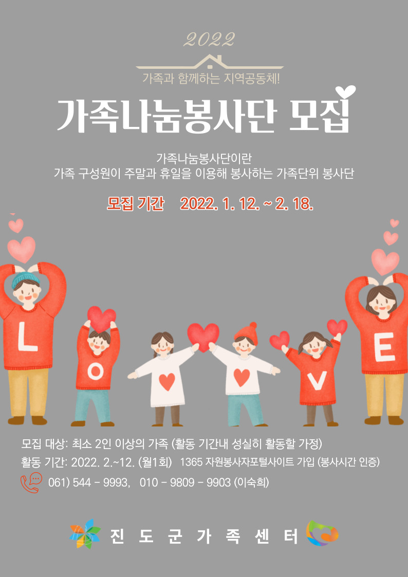 ♣가족센터♣ 2022년 가족나눔봉사단 모집~!!