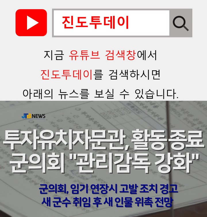 제목 [JTB NEWS/진도투데이] 투자유치자문관, 활동 종료 진도군의회 “관리감독 강화”