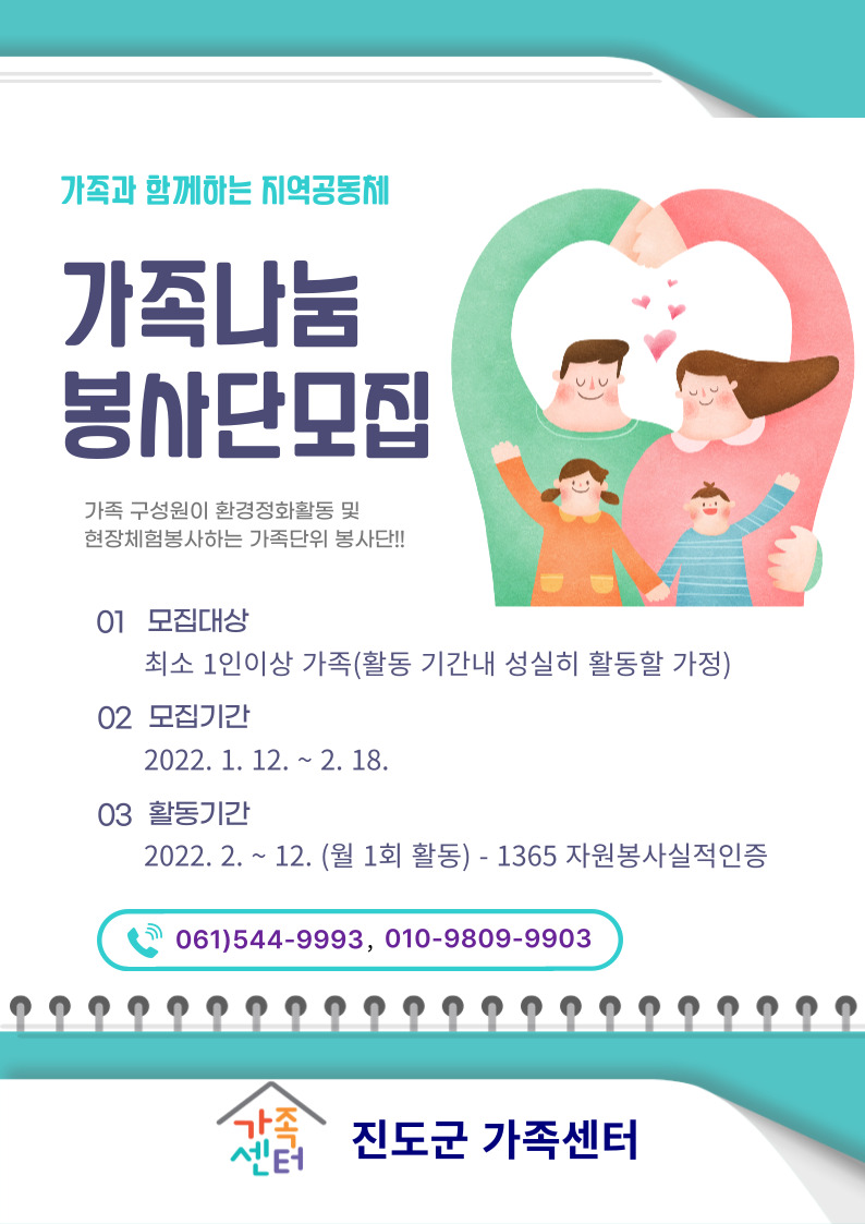 ♣가족센터♣ 가족나눔봉사단과 함께 보람된 한 해를 만들어보세요!!