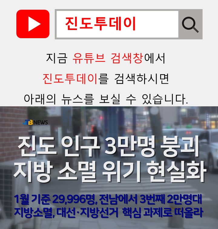 ☞뉴스 영상은 JTB NEWS 홈페이지(www.jindotoday.com) 유튜브를 통해서 확인가능합니다.