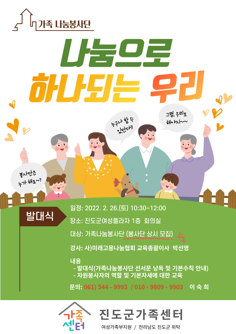 ♣가족센터♣ 가족 나눔봉사단 활동 참여자 모집