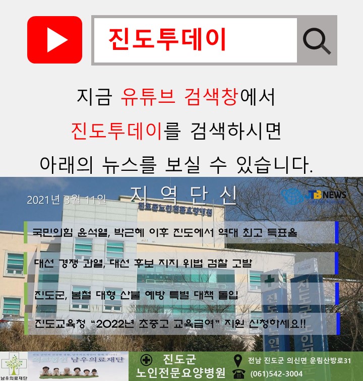 ☞뉴스 영상은 JTB NEWS 홈페이지(www.jindotoday.com) 유튜브를 통해서 확인가능합니다.