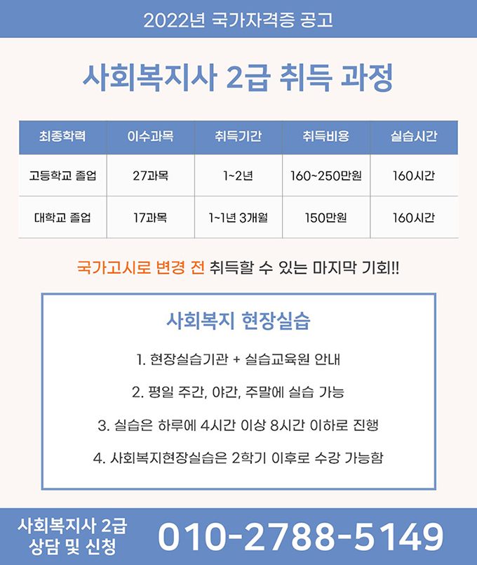 ▶【공지】 사화복지사 2급, 무시험으로 시작해보자