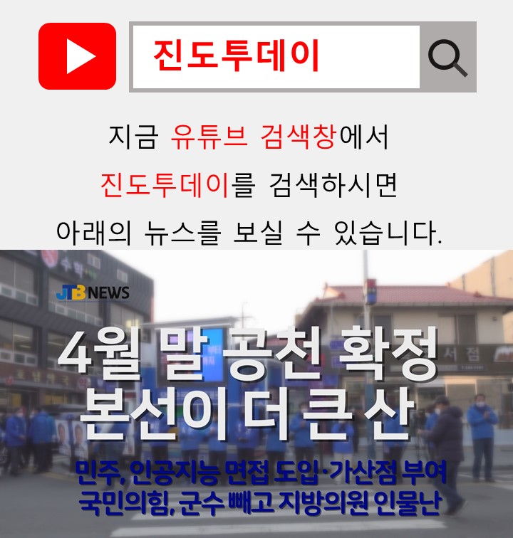 ☞뉴스 영상은 JTB NEWS 홈페이지(www.jindotoday.com) 유튜브를 통해서 확인가능합니다.