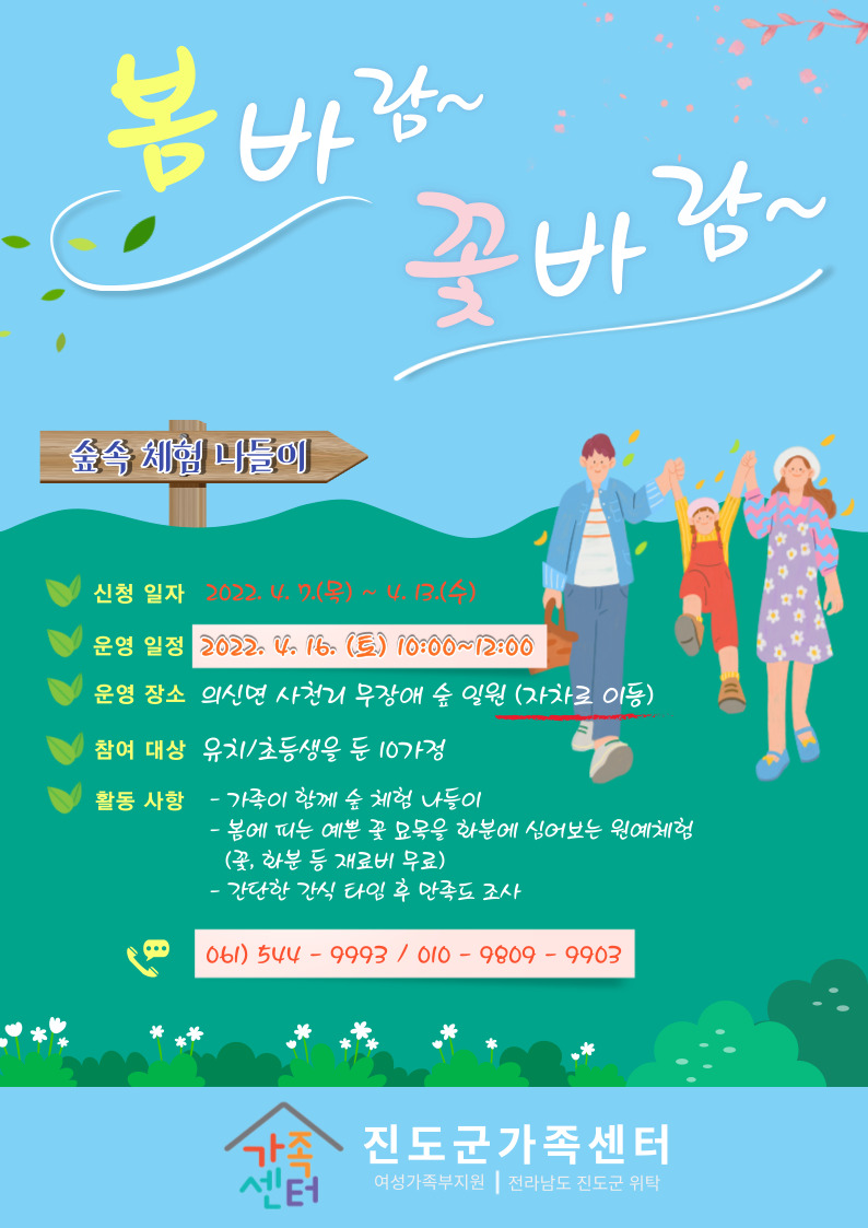 ♣가족센터♣ 가족 사랑의 날 - 봄바람~ 꽃바람~(숲속 체험 나들이) 참여자 모집