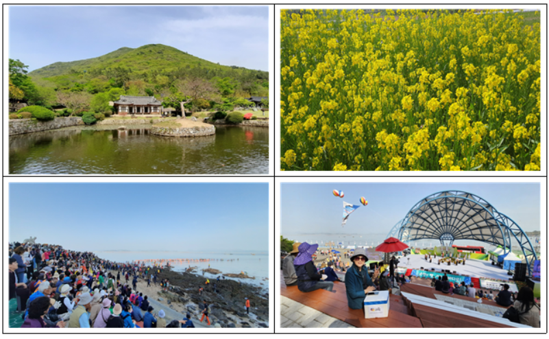 해설사님은 진도의 '신비의 바닷길 축제'에 대해서도 자세히 일러주셨다. 축제에 꼭 참석해보라며 개막식에는 송가인 가수도 온다고 고급 정보를 알려주신다. 4월 20일 오후 개막식 시간에 맞춰 친구와 함께 축제에 참석했다. 다양한 공연 후에 송가인이 무대에 오르자 모든 사람들이 열렬히 환호한다. ‘진도의 딸 송가인’이 보답하듯 몇 곡을 열창한다. 광팬들과 관객들의 열기가 뜨겁다. 강강술래와 향토 공연 후에 드디어 방청객들의 무대가 남았다. 진행자가 무대 위로 희망자들을 불러냈고 진도를 대표하는 것들을 하나씩 이야기하란다. 부상으로는 진도의 참전복 한상자 !!!