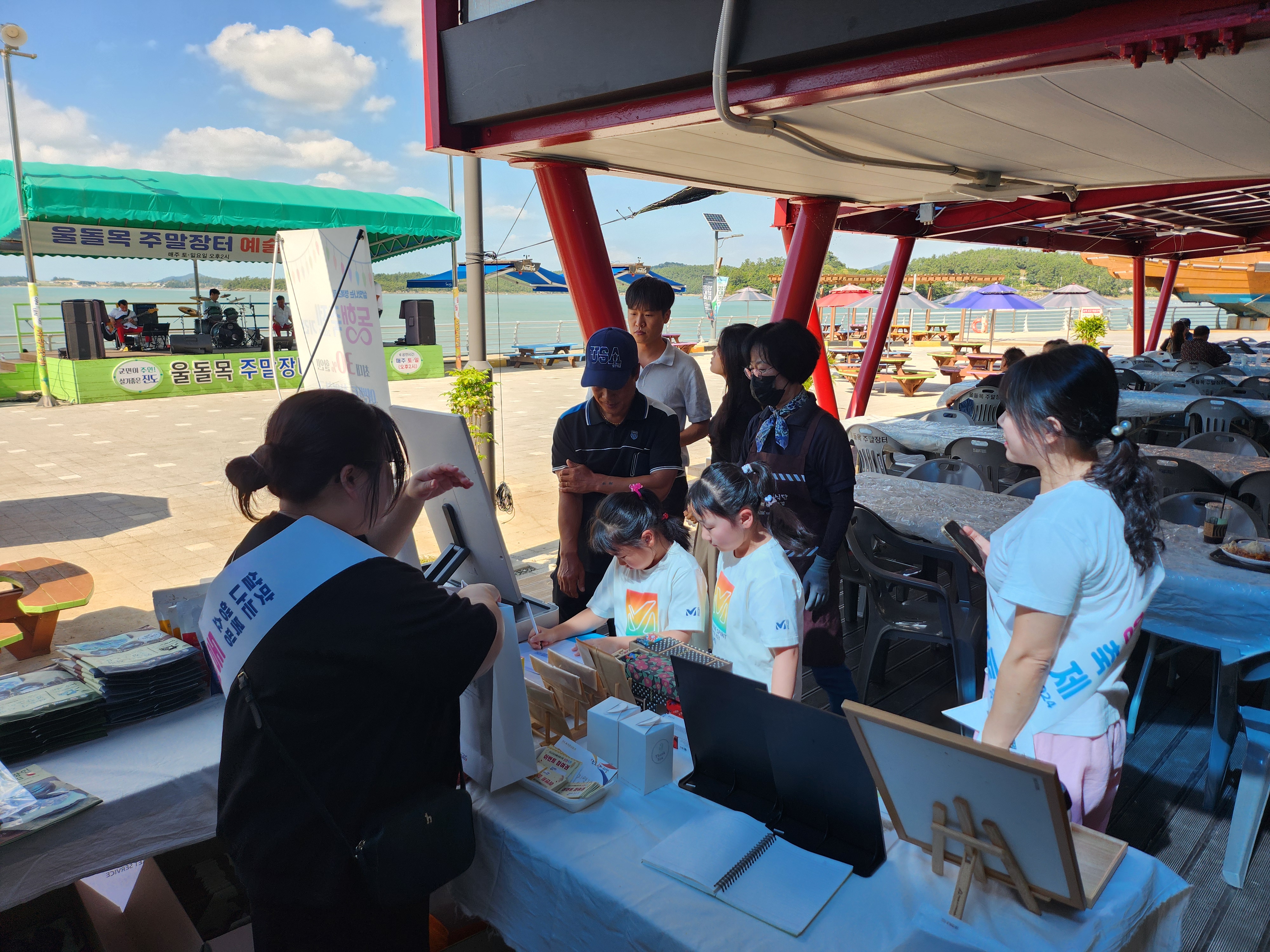 진도대교 밑에 사람들이 몰려있더라구요.