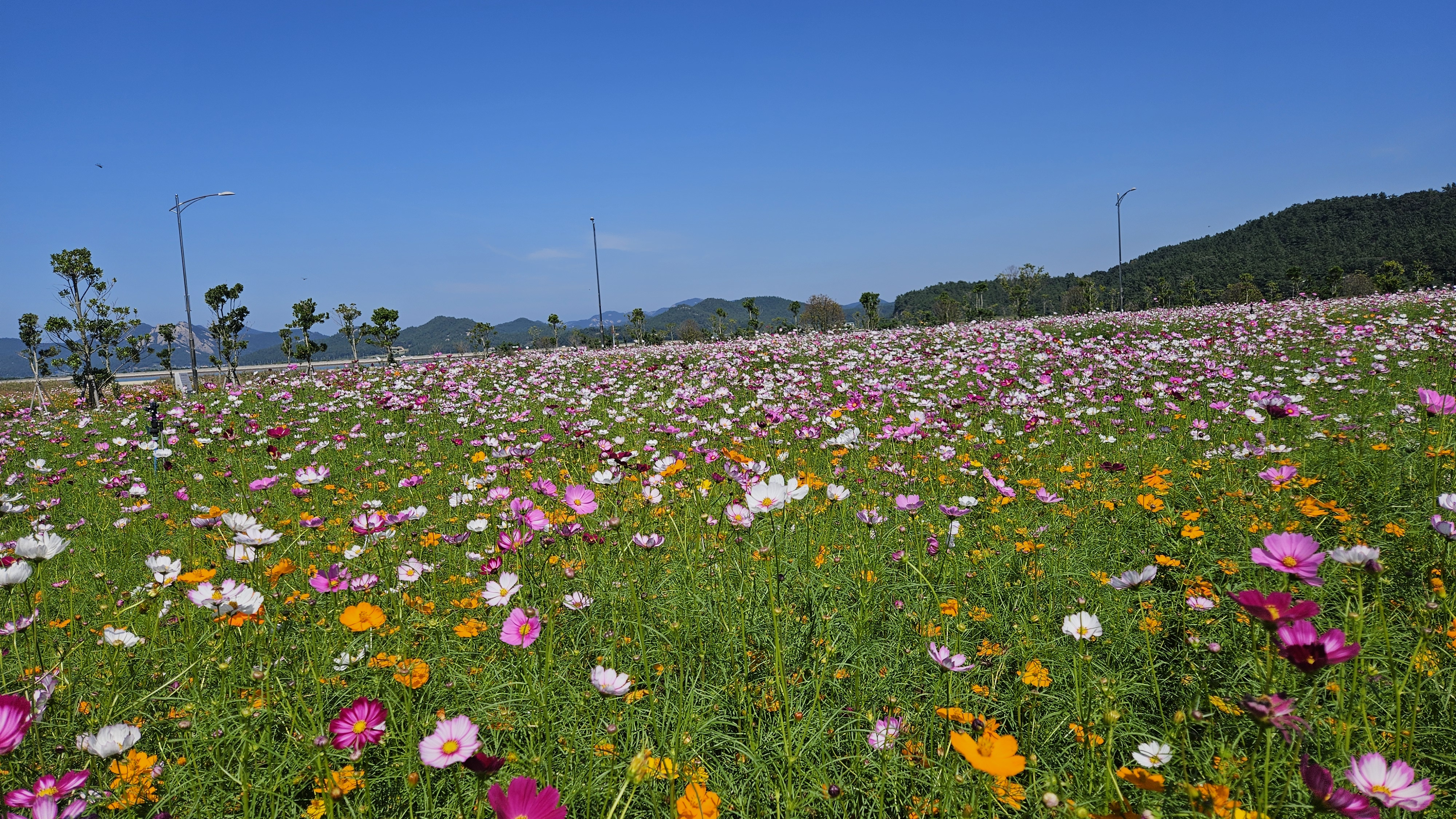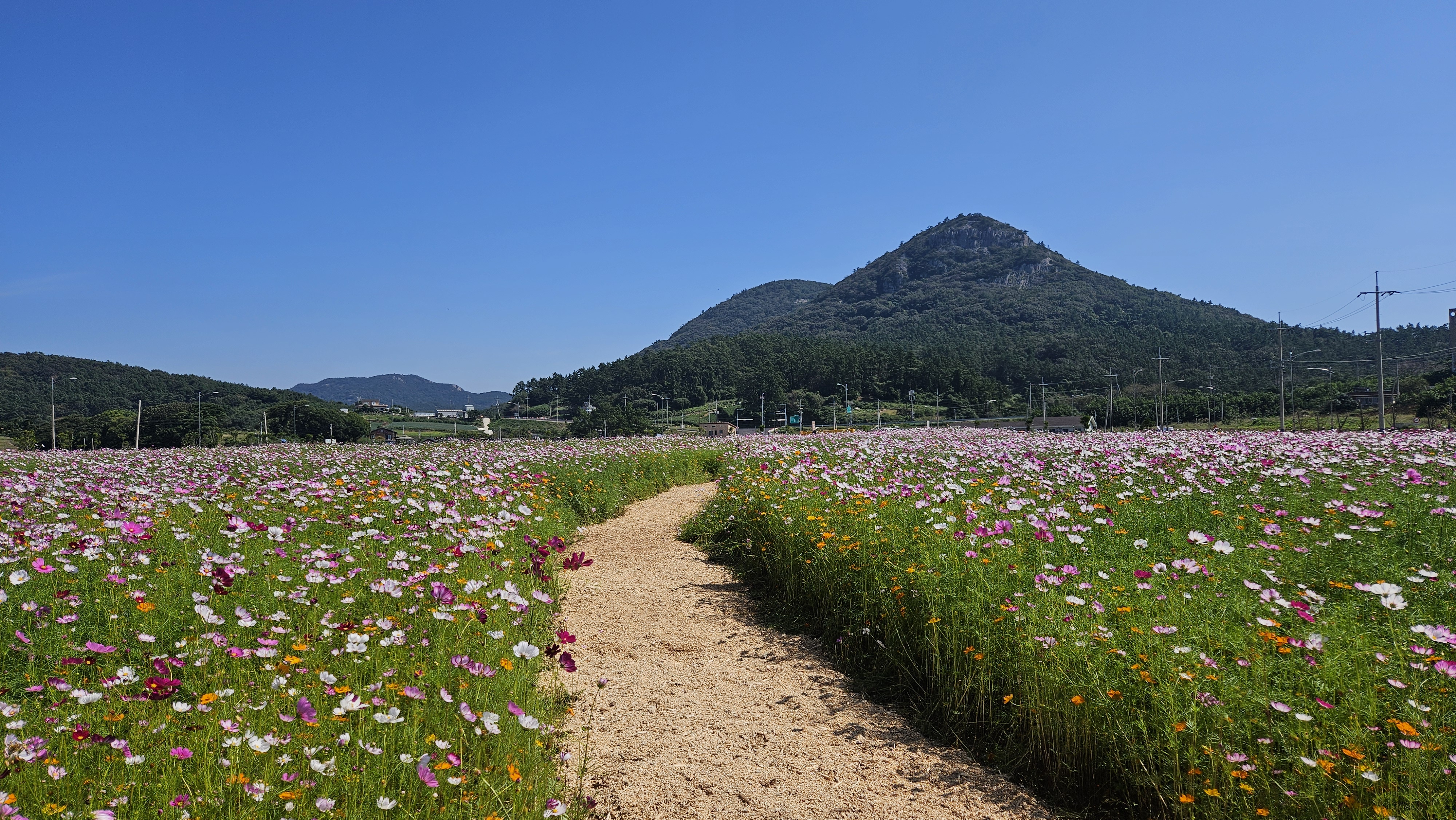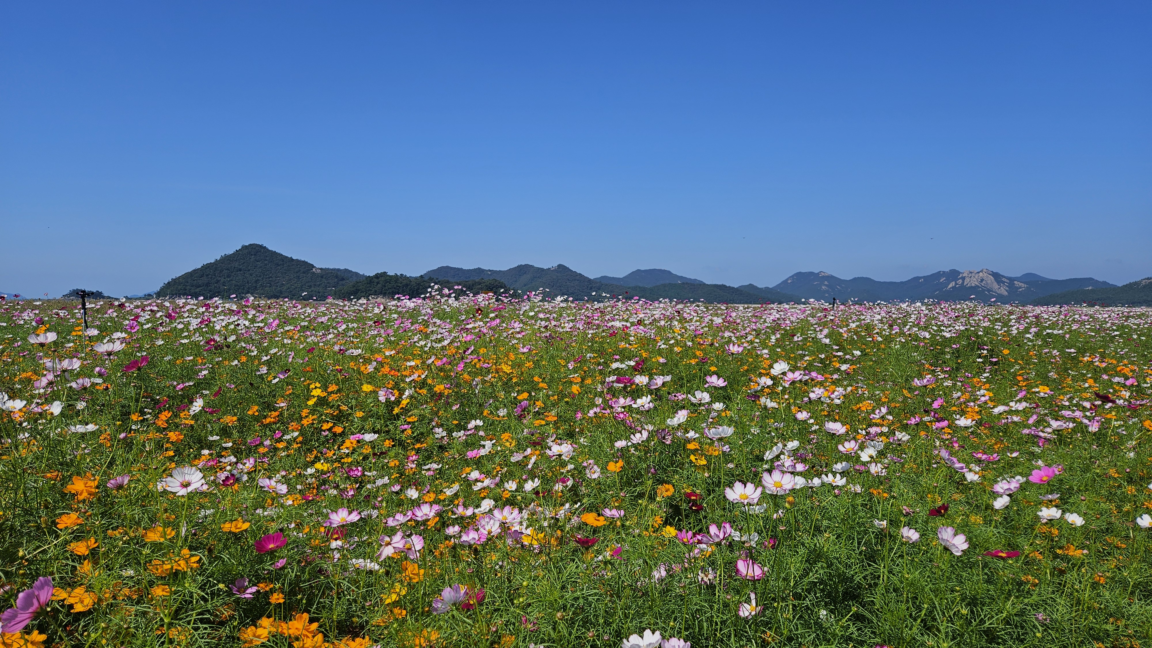 10월 초하루, 진도항에서 근무 중 점심을 마친 뒤 고개를 들어 바라본 가을 하늘은 유난히도 푸르고 맑았습니다. 바로 앞 바다의 고요한 물결과 더불어, 재래종 코스모스와 황화 코스모스가 어울려 활짝 피어 있는 모습은 진도의 가을을 더욱 아름답게 수놓고 있었습니다.
