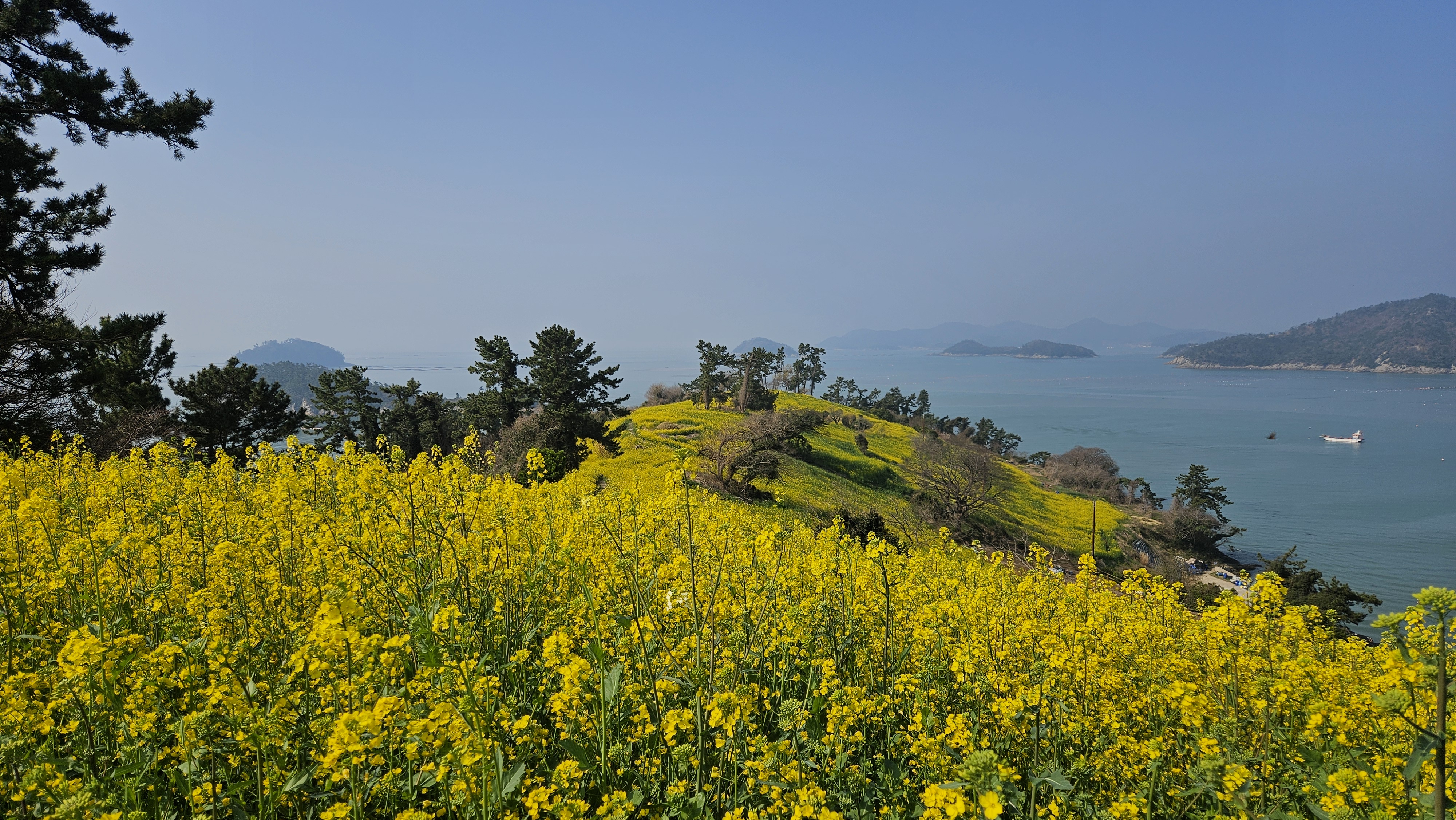 섬 전체에 펼쳐진 노란 유채 물결과 더불어