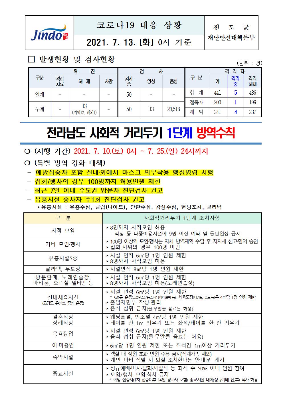 2021년 코로나 19 대응 일일상황보고(7월 13일 0시 기준)