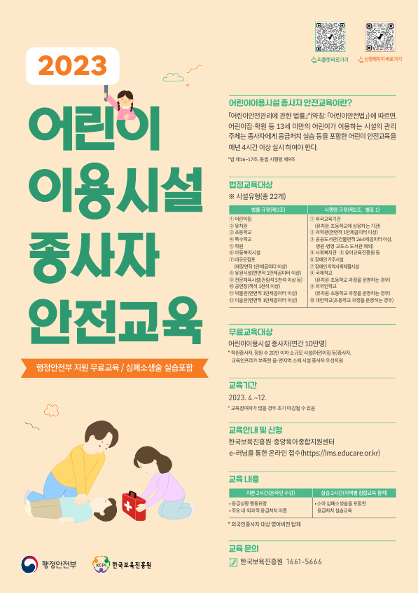 10월중 어린이 이용시설 종사자 안전교육(정부지원 무료교육) 알림
