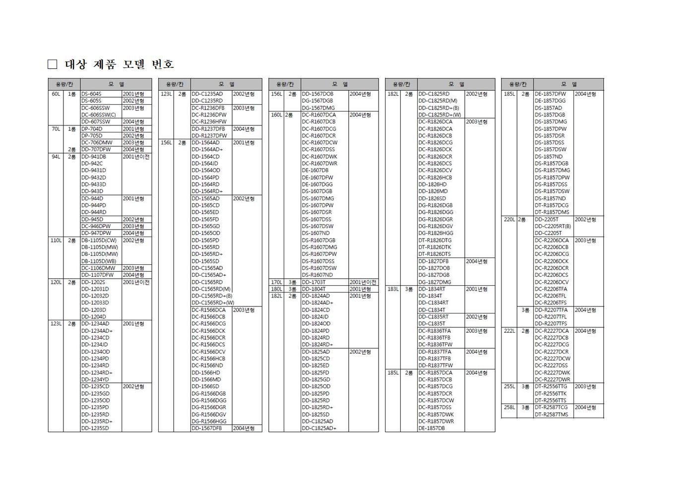 ○ 대상 : 2005년 9월 이전 제조된 위니아 딤채 김치냉장고(뚜껑형)