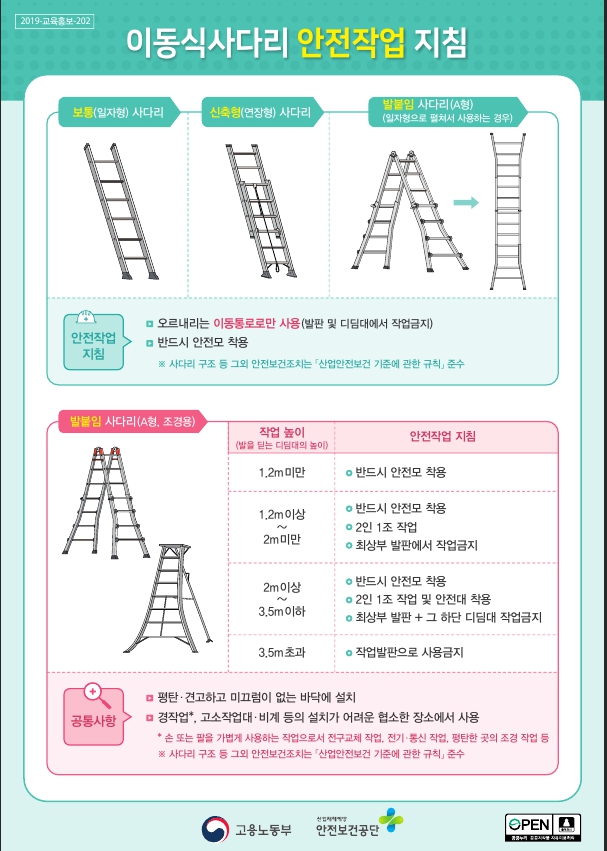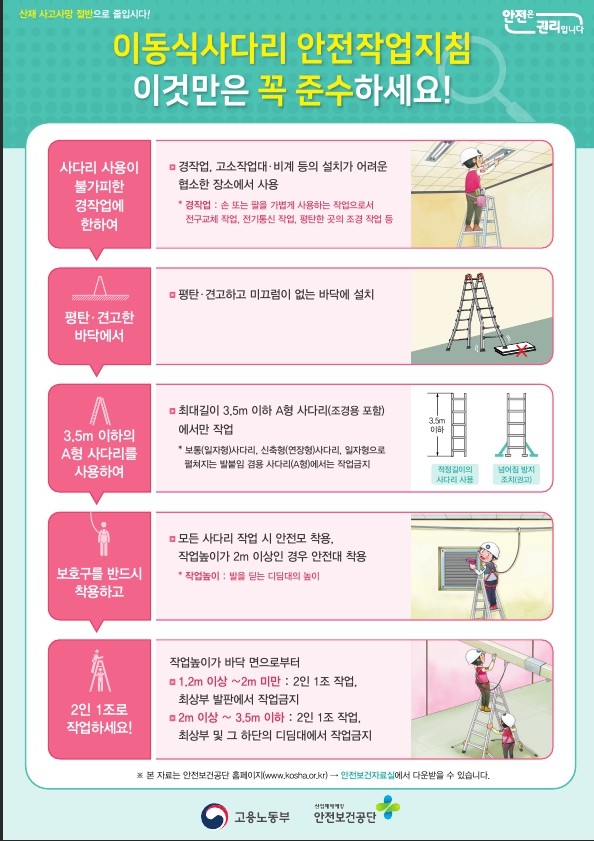 안전문화캠페인 이동식 사다리 안전작업지침 안전문화운동 관리자 2023-10-26 15:07 조회 106 이전글 연안안전사고 예방 안전수칙 및 행동요령 다음글 찾아가는 질식재해 예방 one-call 서비스 목록