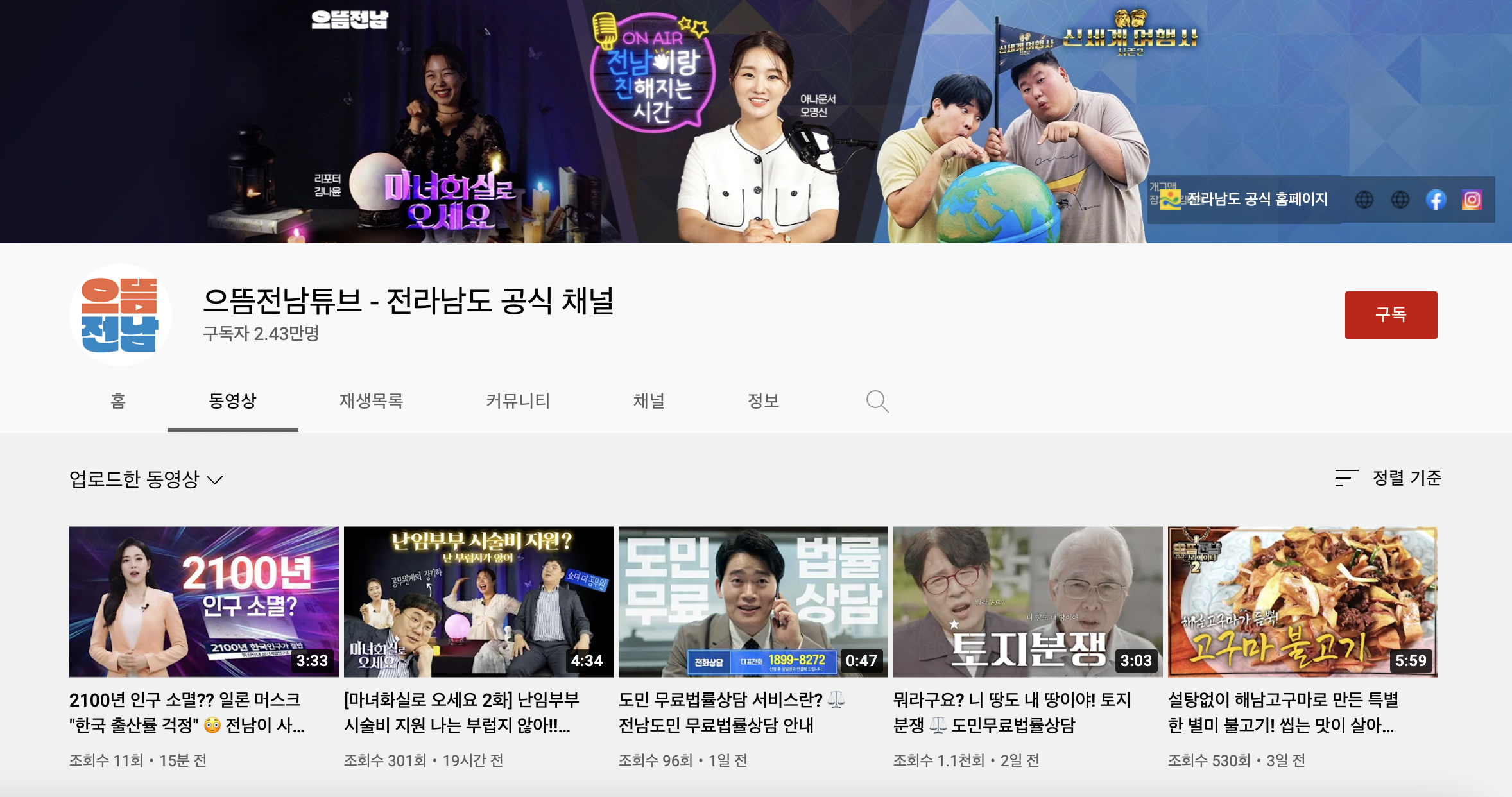 전라남도 공식 유튜브 채널 '으뜸전남튜브'